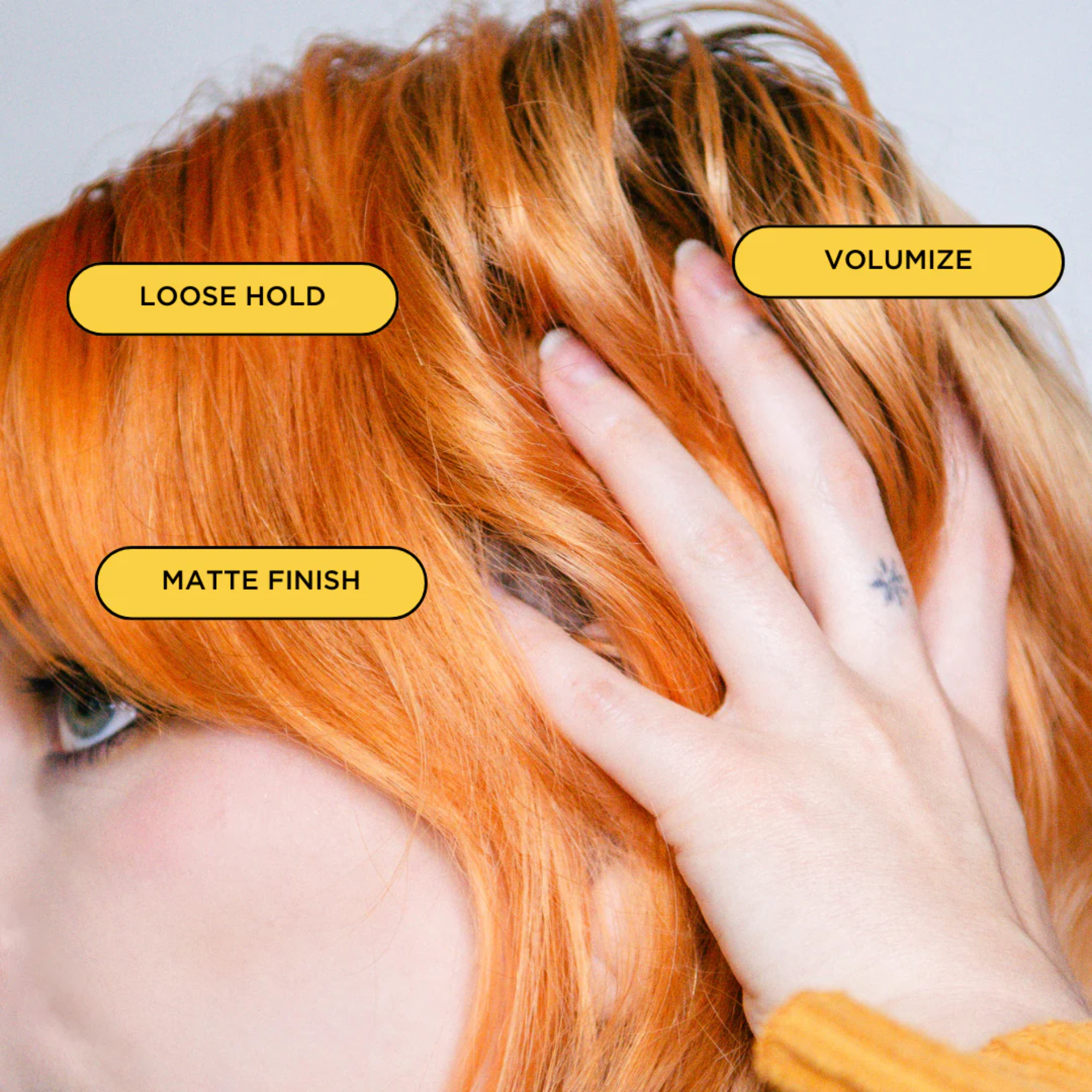 A texturizing and volume-boosting clay spray for loose, flowing, manageable, and flexible hair styles.